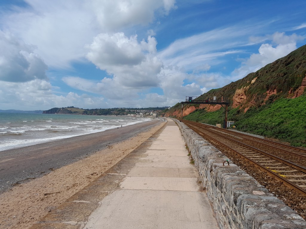 Sunday, 27 June: I did a day trip from Exeter to Dawlish, along a fantastic bike path which went along the river Exe and its estuary; I walked the last bit along a very dramatic path between the train line and the beach (no cycling allowed, so I walked my bike). My brother-in-law Mike Ralls spent several years in Dawlish after he retired and before his untimely death, so I had heard quite a bit about Dawlish from my wife, but never seen it myself. Probably not where I would retire, but I can see why Mike liked it.