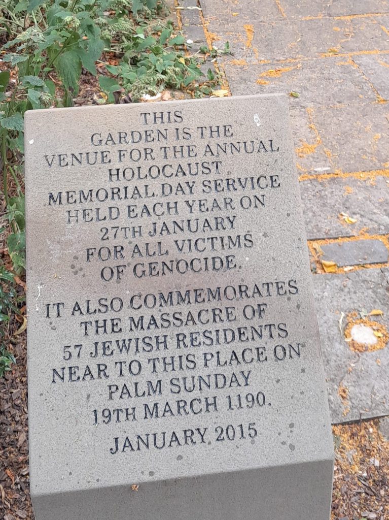 Sunday, 22 June: I took the train to Peterborough on Saturday, arriving quite late in order to avoid a heat wave. On Sunday I cycled to Bury St Edmonds. Really nice cycling through a flat and picturesque part of England. I was impressed by the ruins of the old abbey at Bury, but what most moved me was a plaque to a massacre of Jews in the middle ages. I knew about the massacre of Jews at York in 1190, but I had not realised that there were also massacres elsewhere at this time.