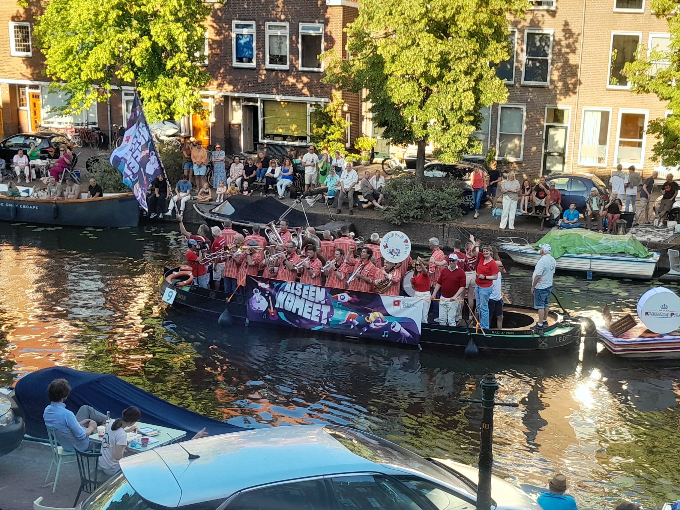 Friday, 4 July: I wandered around Leiden during the day, visiting two excellent museums: Rijksmuseum van Oudheden (archaeology) and Wereldmuseum (ethnology). Leiden is not big, but has some great museums, perhaps because its university is the oldest in Netherlands. In the evening, I discovered that there was a parade outside my hotel, with the floats on boats instead of trucks! Totally unexpected, and I spent several hours watching (and listening to) the boat parade.